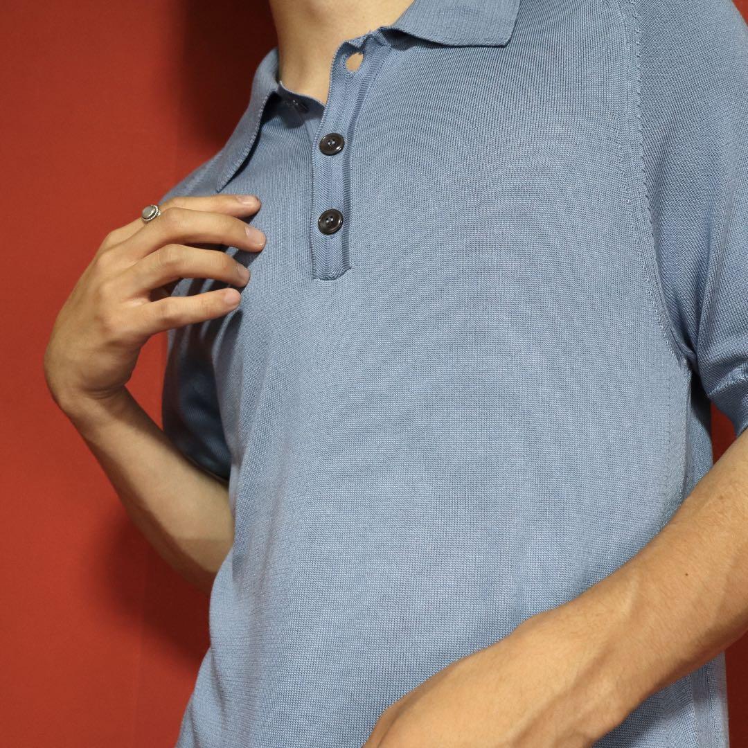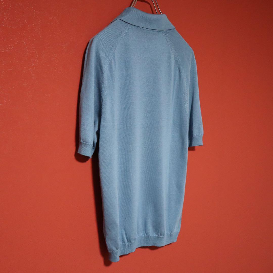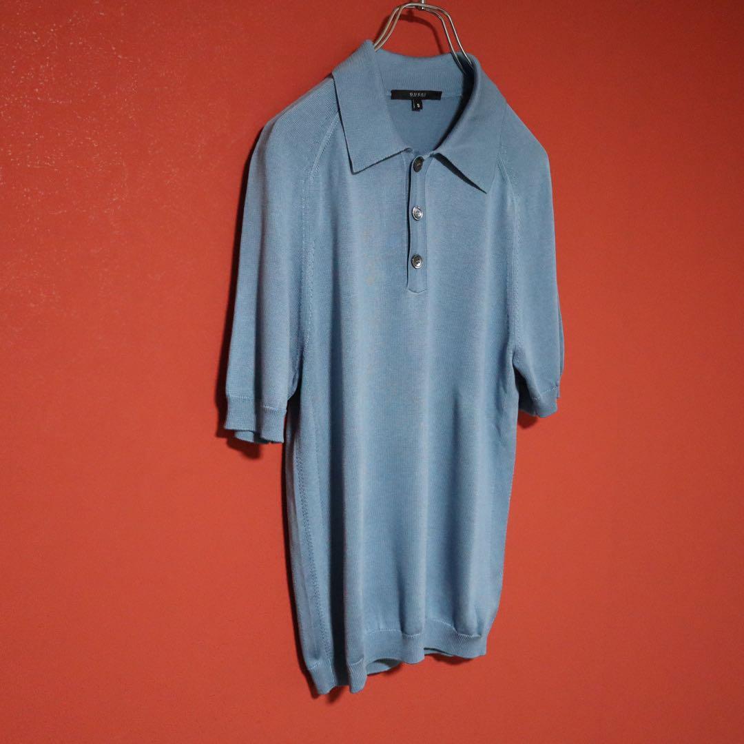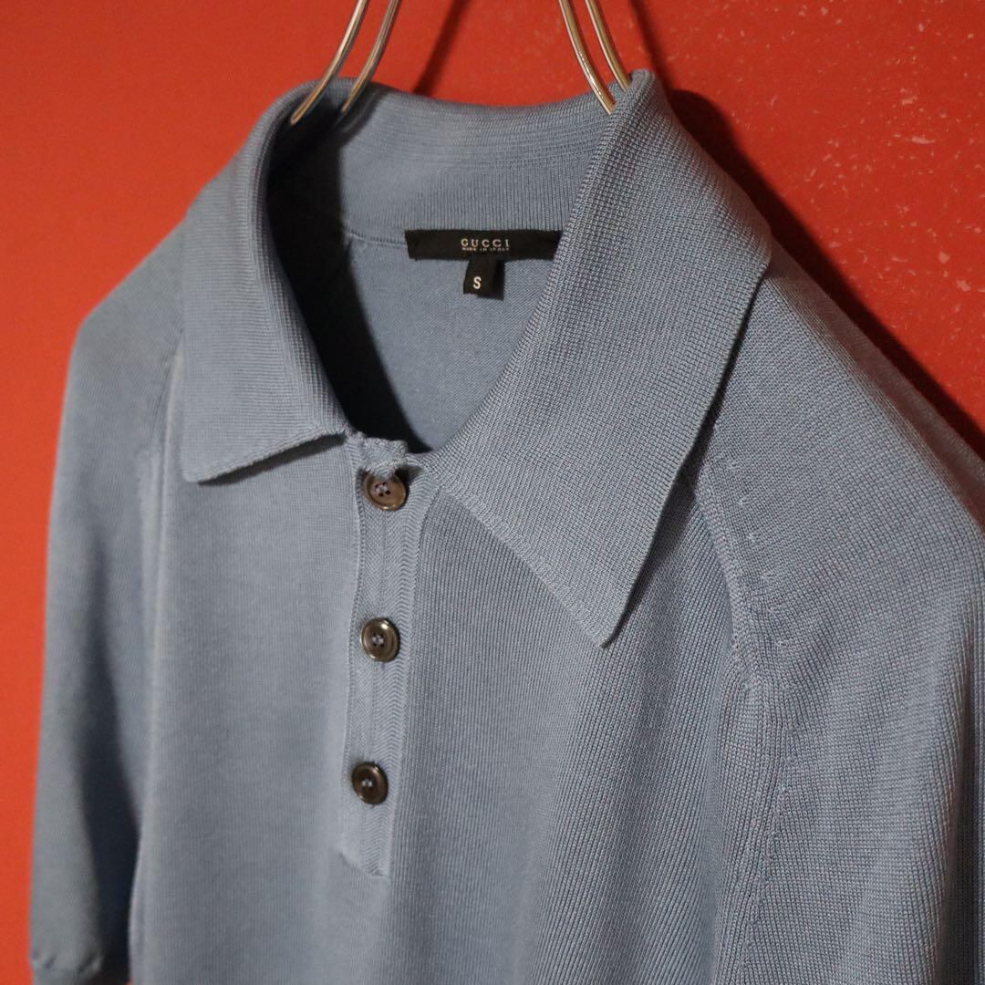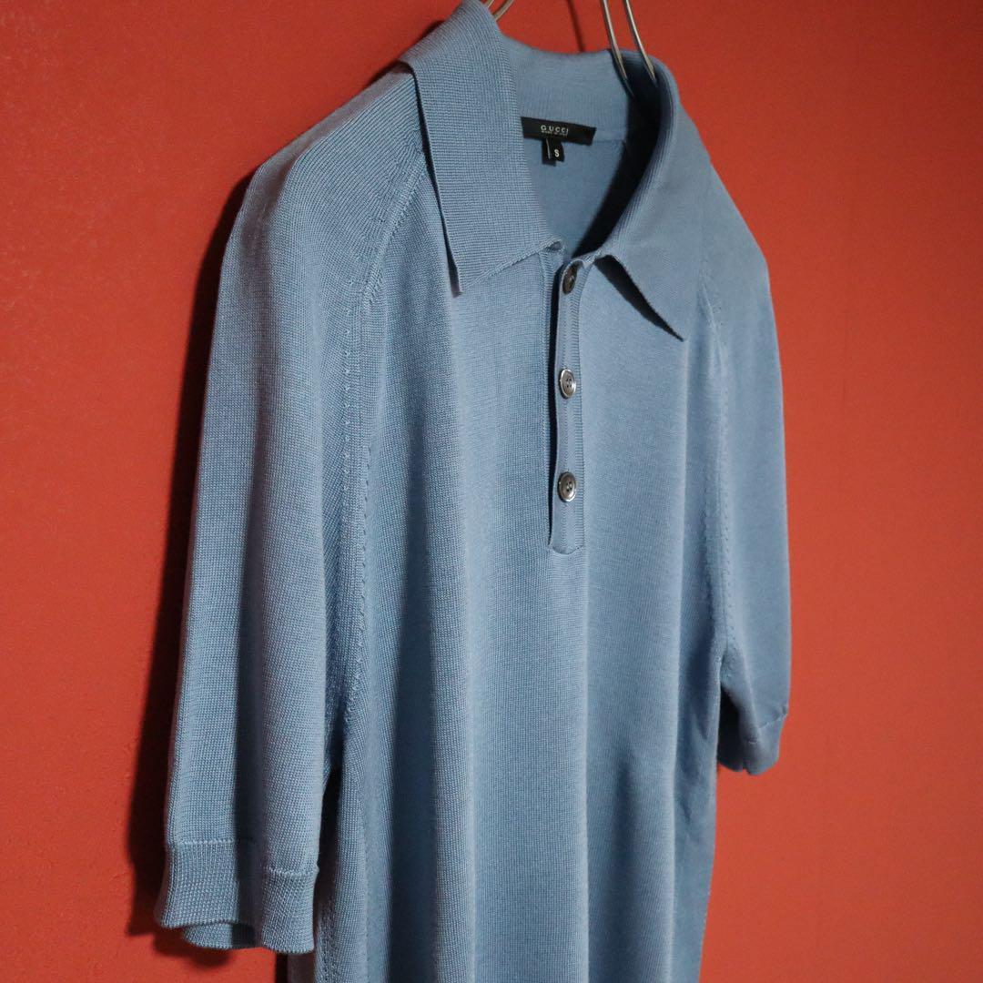 ◆【最高級】GUCCI グッチ シルク100% 絹 水色 サマーニット ポロシャツ