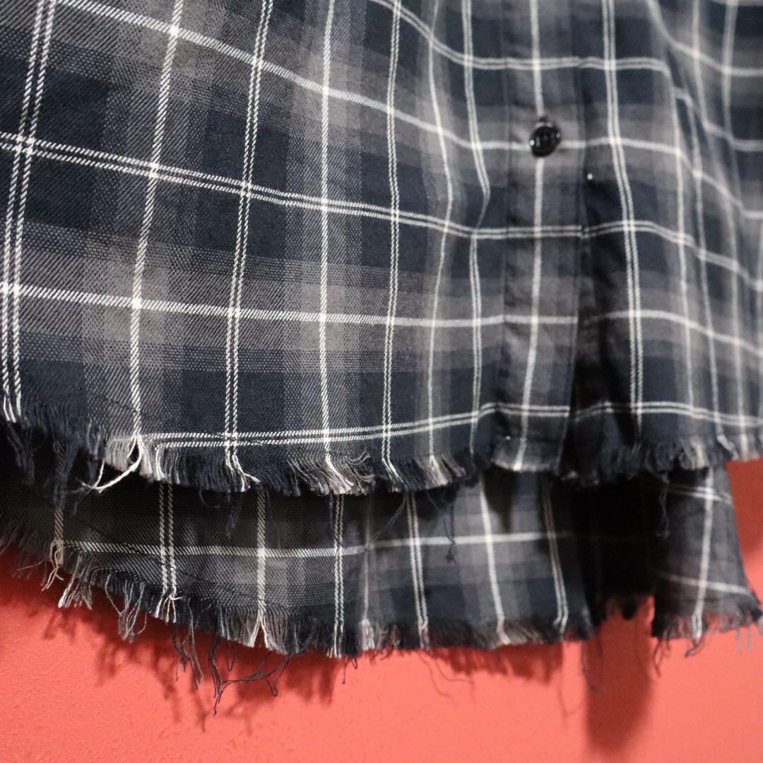 チェック柄 総柄 ほつれ加工 ダメージデザイン