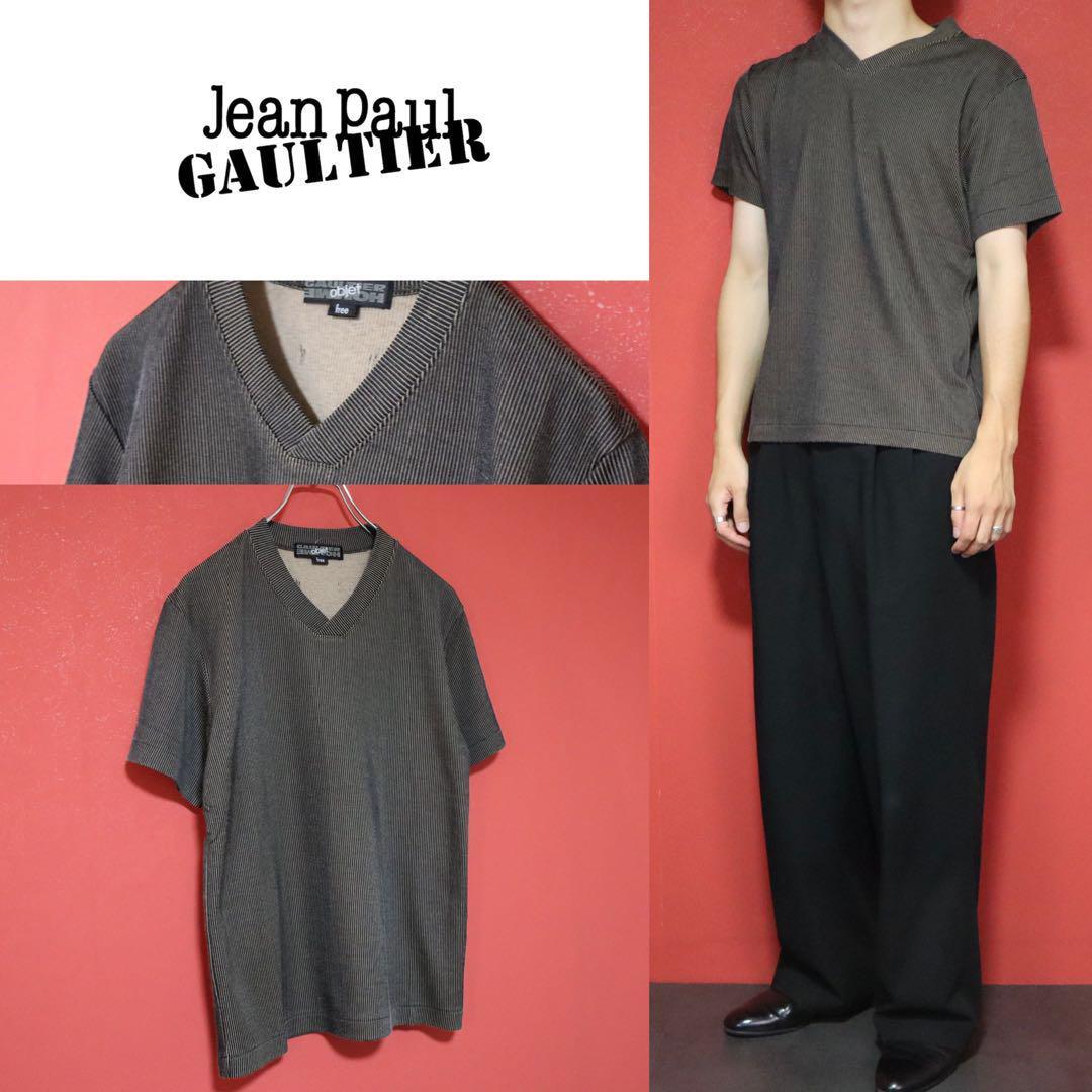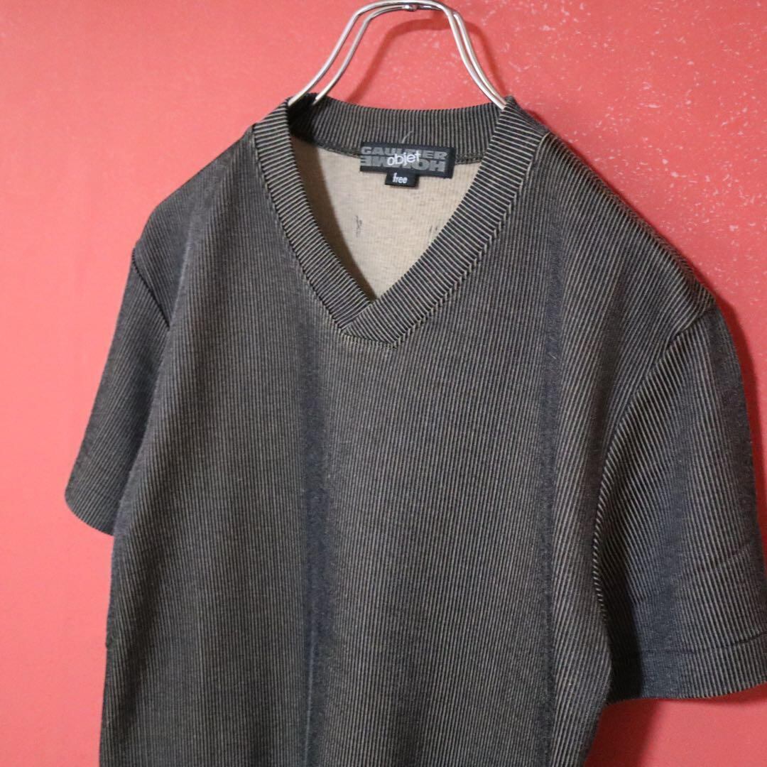 ◆ GAULTIER HOMME objet 立体ストライプ Vネック Tシャツ