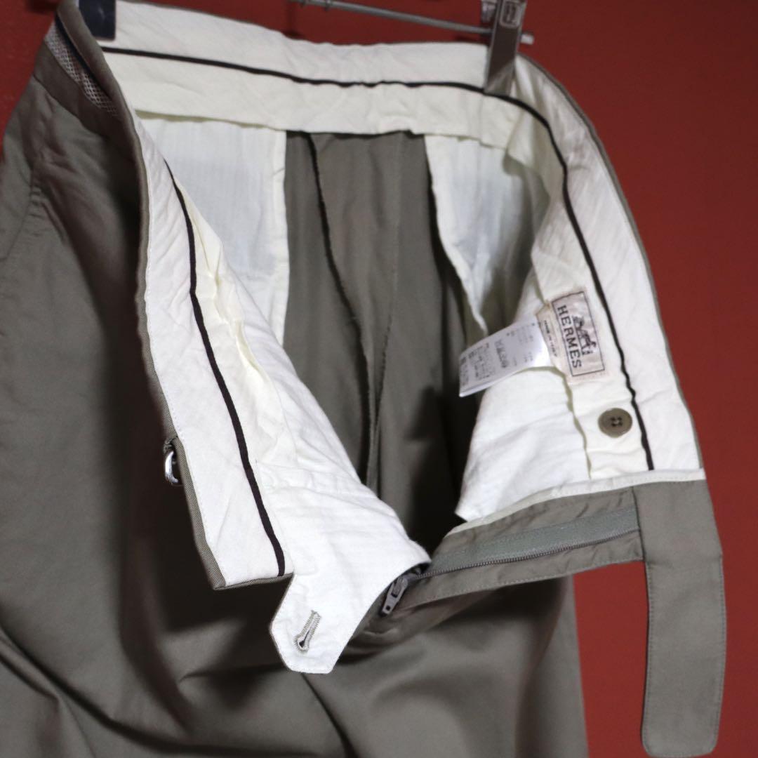 ◆ HERMES エルメス ベルトデザイン ロゴ刻印 ワイドチノスラックス