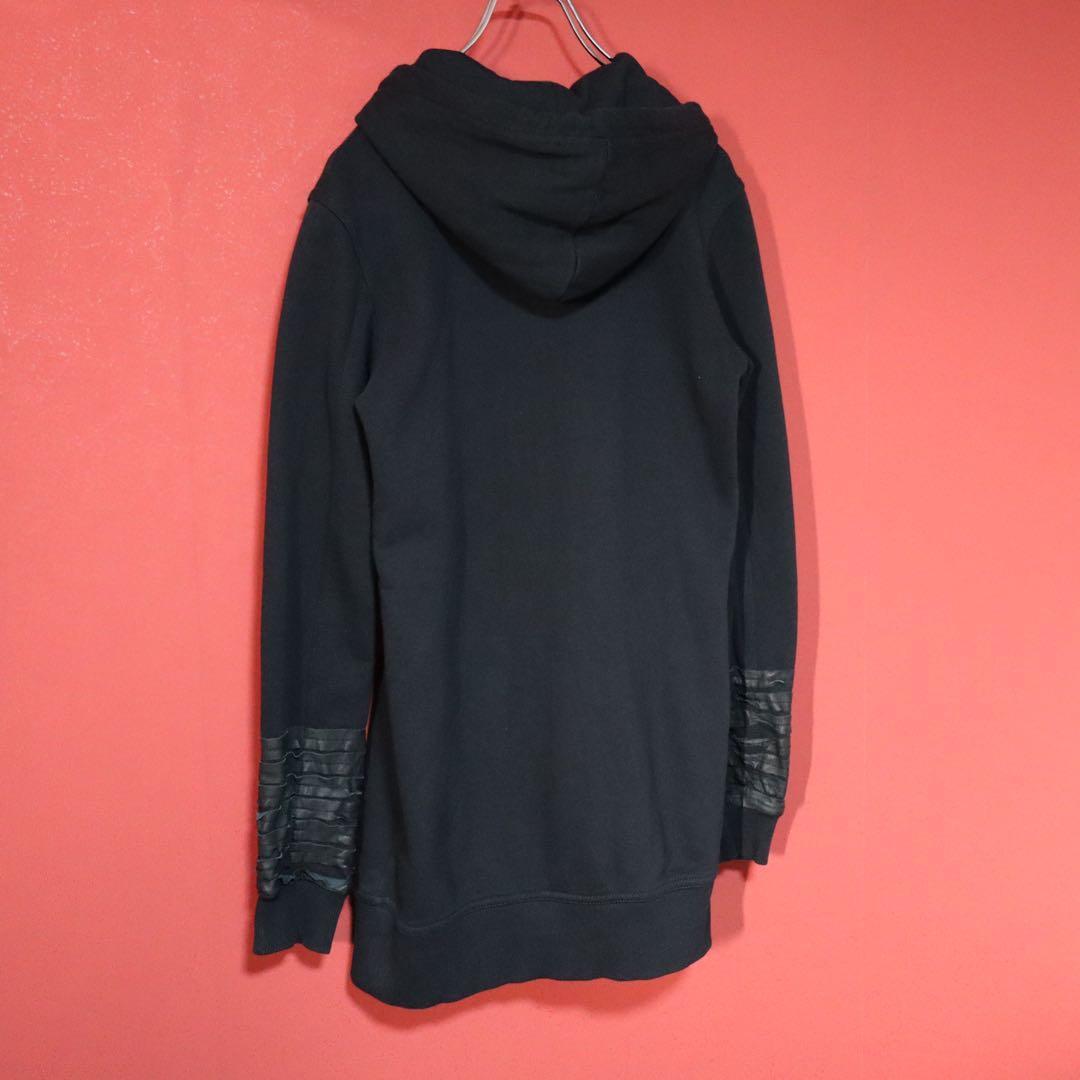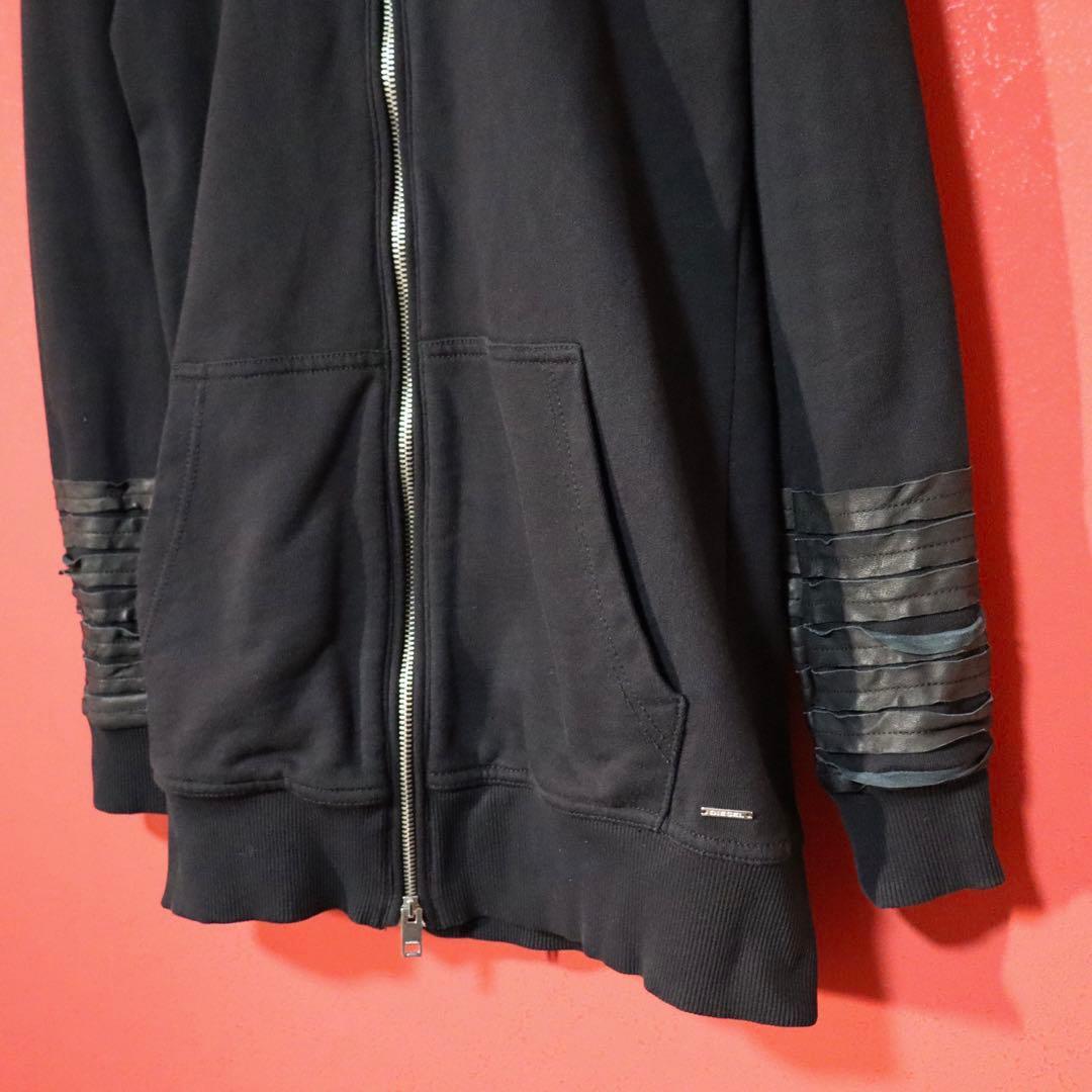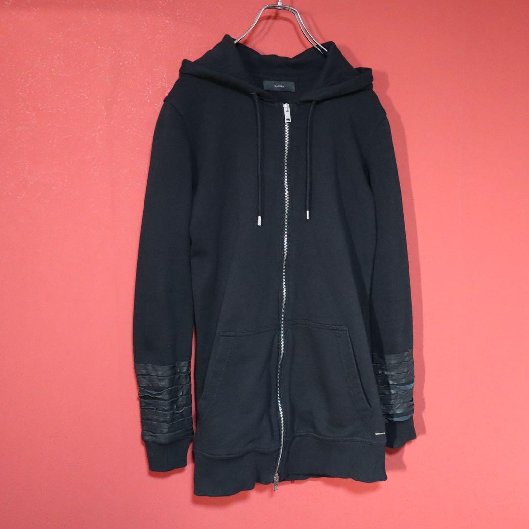 ◆ DIESEL ディーゼル 袖レザー切り替え ダブルジップ ロング丈 フーディー