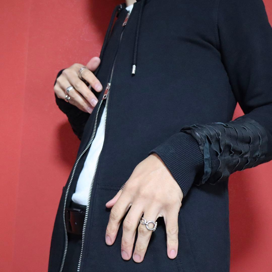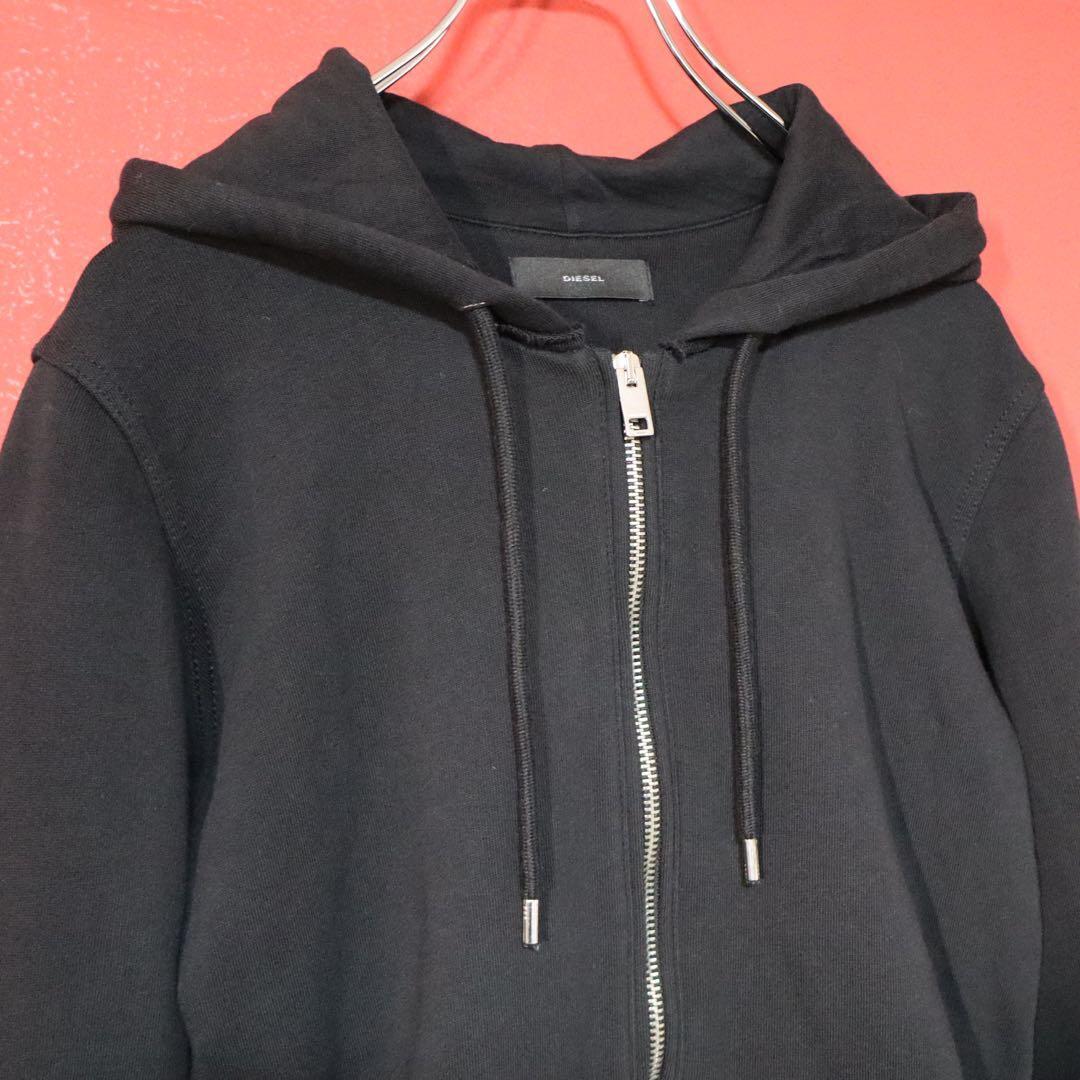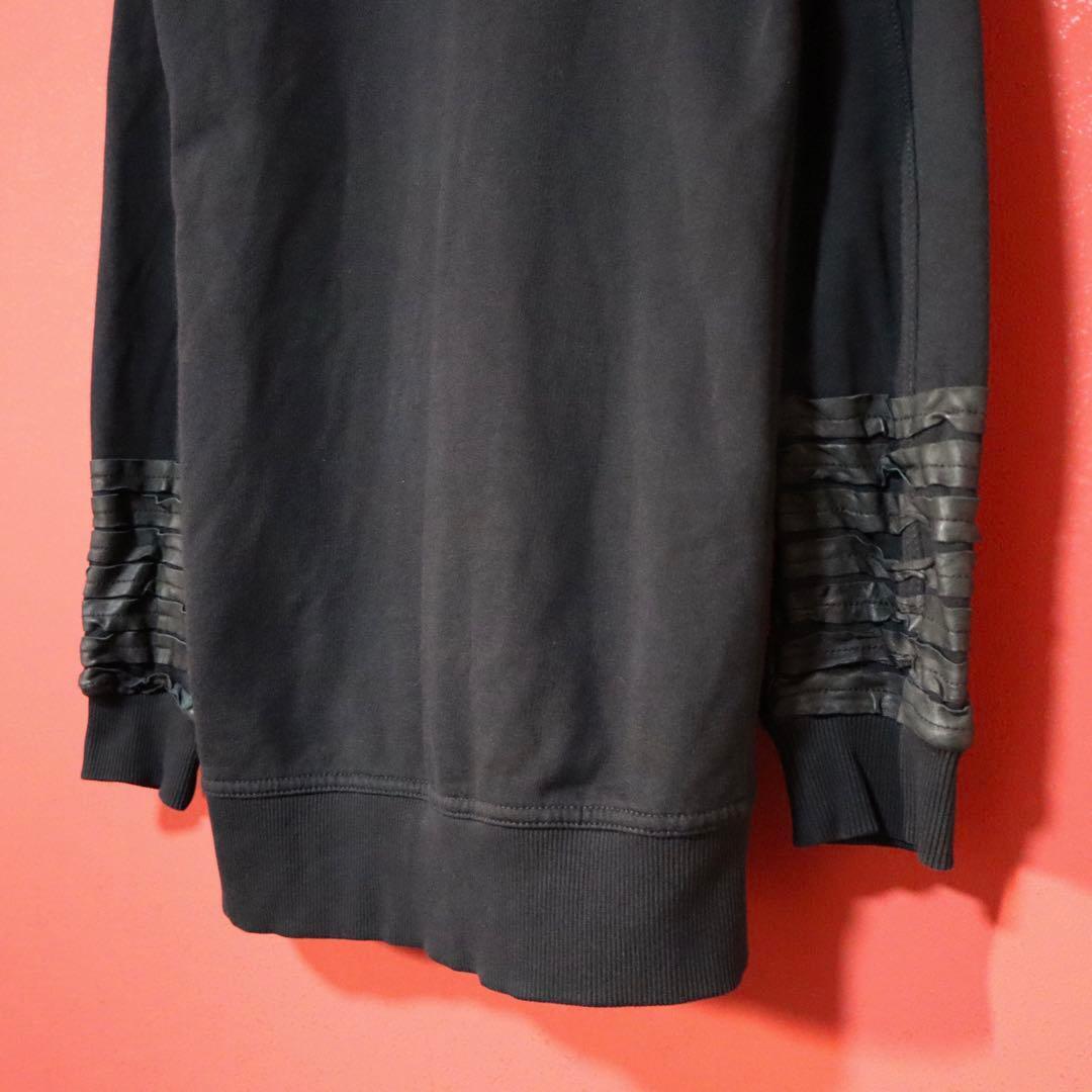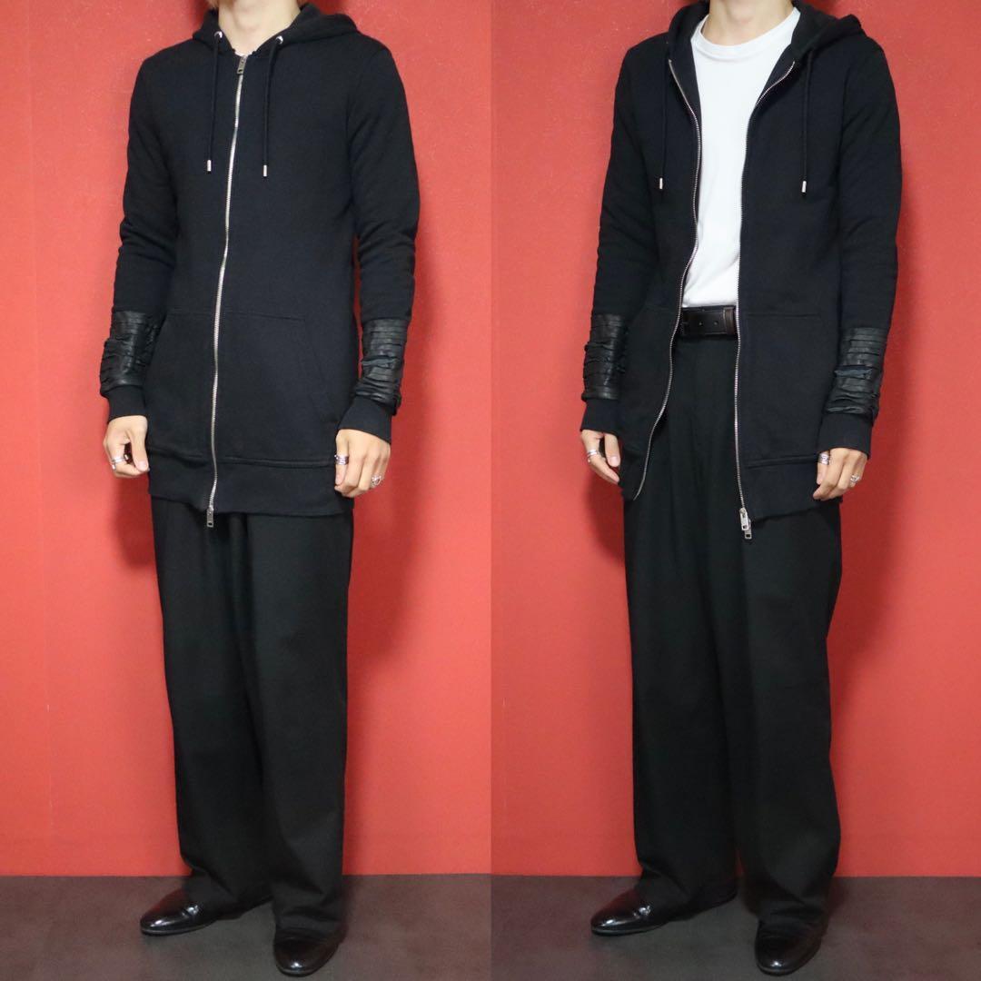 ◆ DIESEL ディーゼル 袖レザー切り替え ダブルジップ ロング丈 フーディー