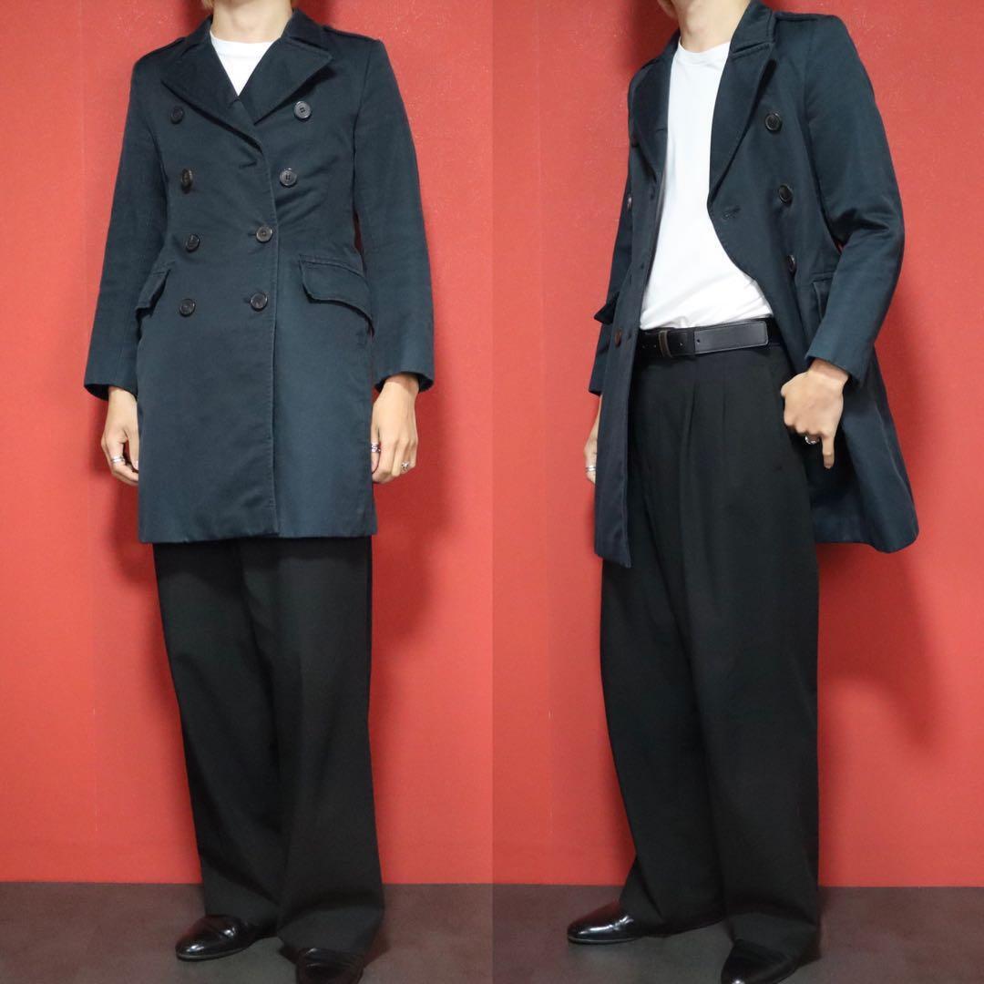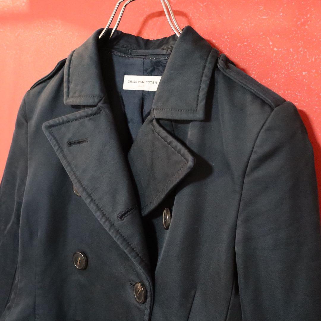 ◆ DRIES VAN NOTEN ネイビー 光沢デザイン トレンチコート