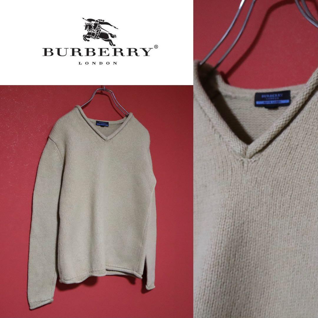 ◆ BURBERRY BLUE LABEL 上質ラムウール100% Vネック ニット