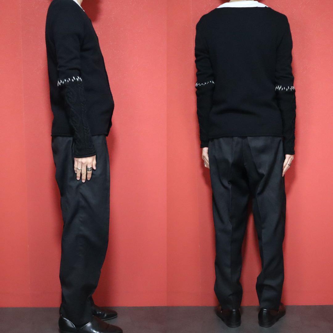◆ Y's ヨウジヤマモト 袖ステッチ ケーブル編み 切り替え ニットカーディガン