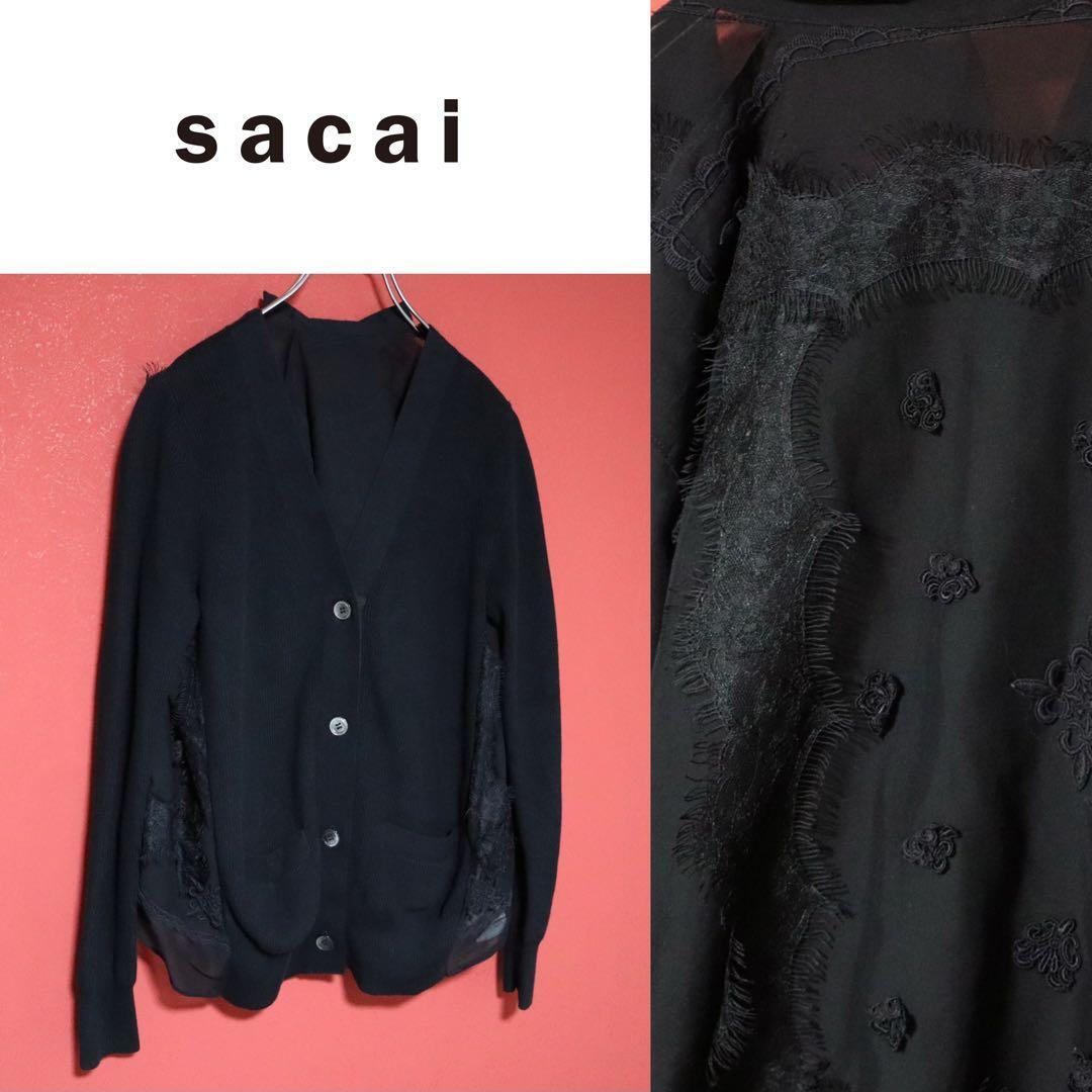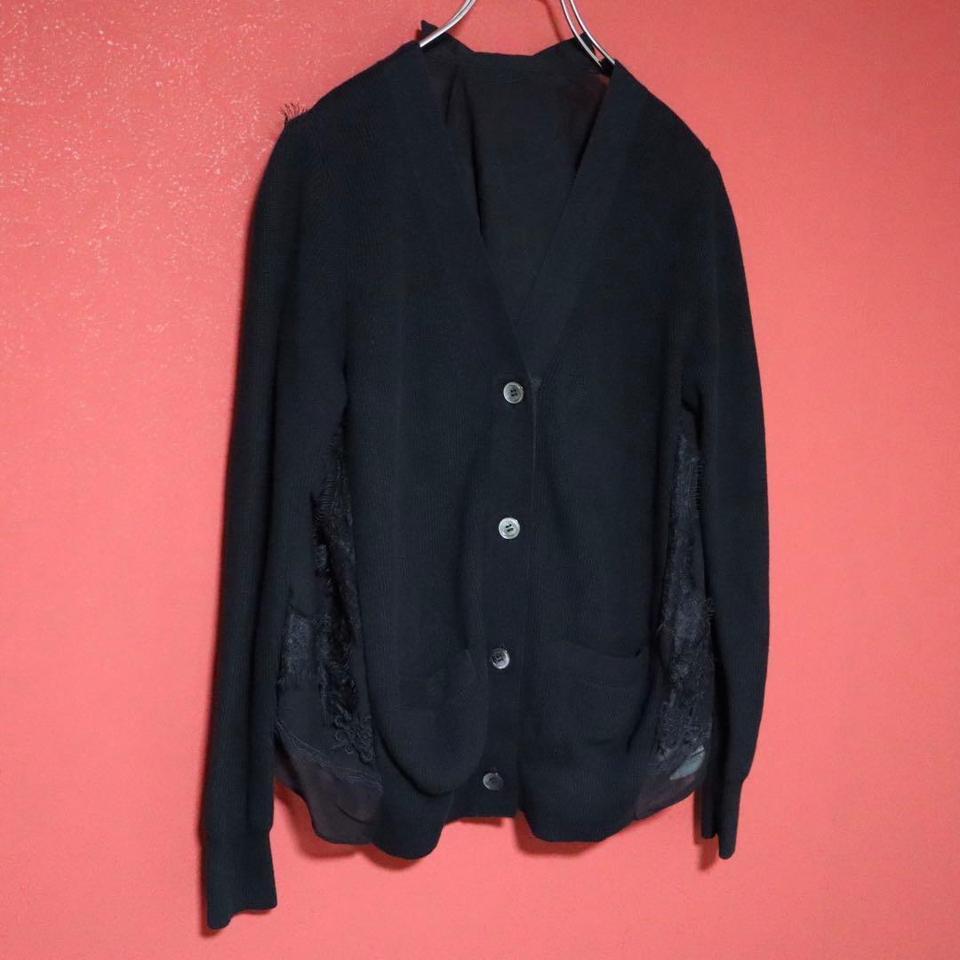 ◆【モード】sacai 再構築 切替デザイン シースルー ニットカーディガン