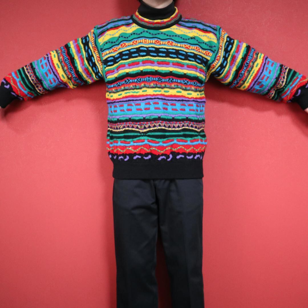 ◆【スペシャル】coogi クージー 原色系 派手柄 立体構造 編込み 3Dニット